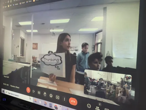 The meetings held with other fifth-grade classrooms are called "Mystery Meets." Mystery Meets (Zooms, Skypes, Hangouts, etc.) is a game where opposing classrooms join on a video call and attempt to guess the location of the opponent by taking turns asking questions, such as, "are you located west of the Mississippi River?" or "does your state have an ocean coastline?" Participating in these meetings offers students the opportunity to make connections with students from around the world. It provides a deeper understanding of geography and how to apply it in a real-life scenario. Mr. Olson has been able to build a network of teachers using Twitter and Facebook groups to participate in these meets, and this year his class was able to meet with classrooms in New York, Kansas, Ohio, New Jersey, Wisconsin, Illinois, and California.